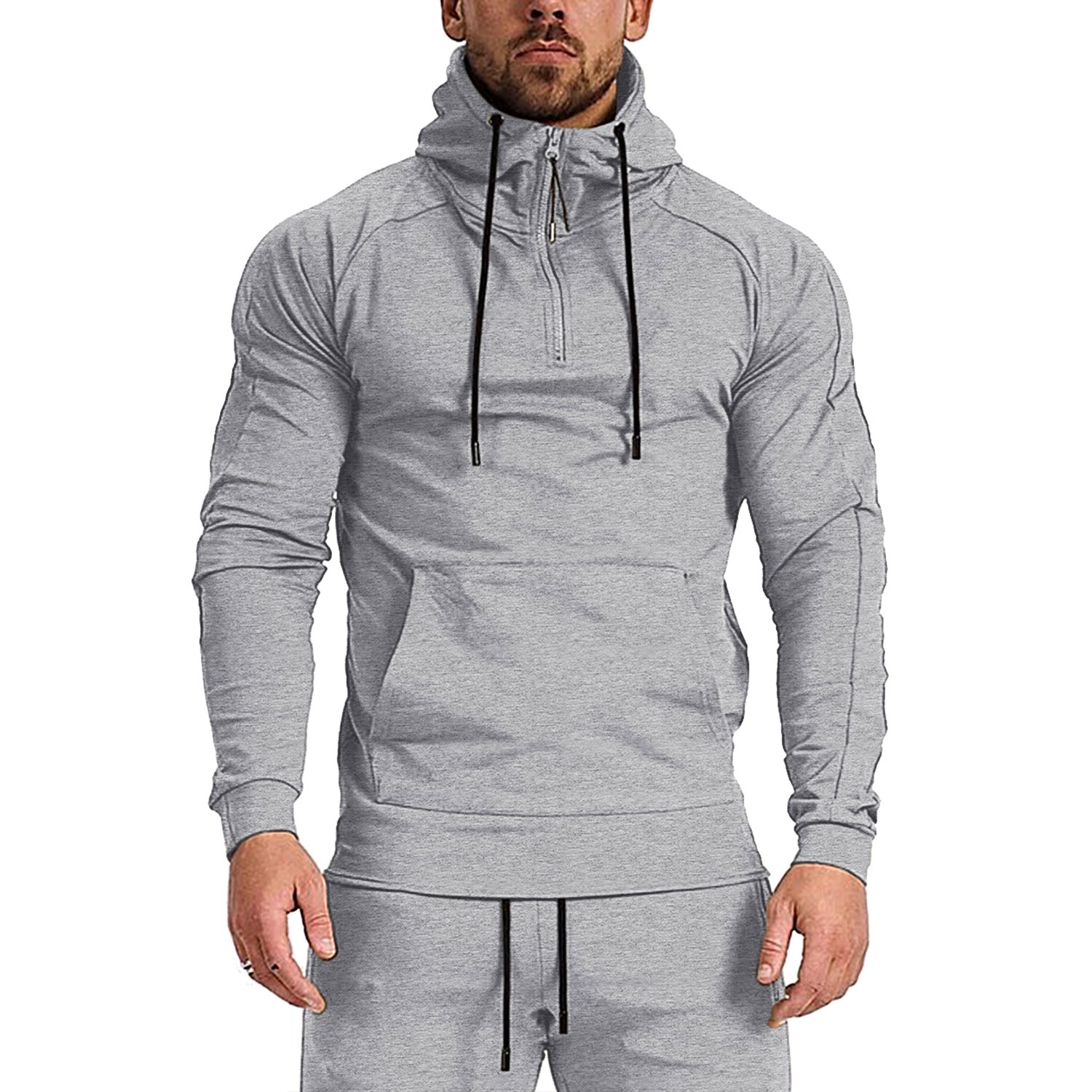 Men's 1/4 Zip Fashion Pullover Hoodie Athletic Workout Fit Cotton Hooed Sweatshirts